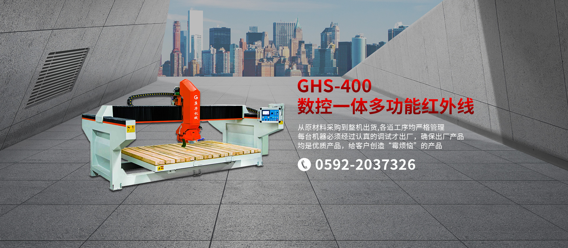 廈門(mén)庚華機(jī)械有限公司坐落于風(fēng)景秀麗的海濱城市——廈門(mén),是一家集研發(fā)、制造、銷(xiāo)售和服務(wù)于一體的石材設(shè)備專(zhuān)業(yè)生產(chǎn)廠(chǎng)商。公司擁有豐富經(jīng)驗(yàn)且精湛技術(shù)的專(zhuān)業(yè)設(shè)計(jì)工程師團(tuán)隊(duì),不斷提升產(chǎn)品品質(zhì),為客戶(hù)設(shè)計(jì)、制造各類(lèi)石材機(jī)械產(chǎn)品。公司正憑借其過(guò)硬的產(chǎn)品質(zhì)量、專(zhuān)業(yè)的精英業(yè)務(wù)團(tuán)隊(duì)、零距離全方位的服務(wù),整合外部資源,優(yōu)化內(nèi)部管理,不斷開(kāi)拓創(chuàng)新,在激烈的市場(chǎng)競(jìng)爭(zhēng)中,從眾多品牌中脫穎而出。 公司生產(chǎn)適用于大理石、花崗巖、砂巖、石灰?guī)r、洞石、玉石等各種石材的機(jī)械設(shè)備。主要產(chǎn)品有GHHW系列紅外線(xiàn)橋式切邊機(jī)、GHQQ系列橋式多片組合鋸石機(jī)、各種手動(dòng)/自動(dòng)/單頭/多頭板材磨拋機(jī)、以及各種異形加工設(shè)備。公司長(zhǎng)期注重品質(zhì)管理,以質(zhì)量為中心,從原材料采購(gòu)到整機(jī)出貨,各道工序均嚴(yán)格管理,每臺(tái)機(jī)器必須經(jīng)過(guò)認(rèn)真的調(diào)試才出廠(chǎng),確保出廠(chǎng)產(chǎn)品均是優(yōu)質(zhì)產(chǎn)品,給客戶(hù)創(chuàng)造“零煩惱”的產(chǎn)品。 ? 我們將不斷提供高品質(zhì)的產(chǎn)品和服務(wù),我們期待與你們攜手合作,共創(chuàng)美好明天!